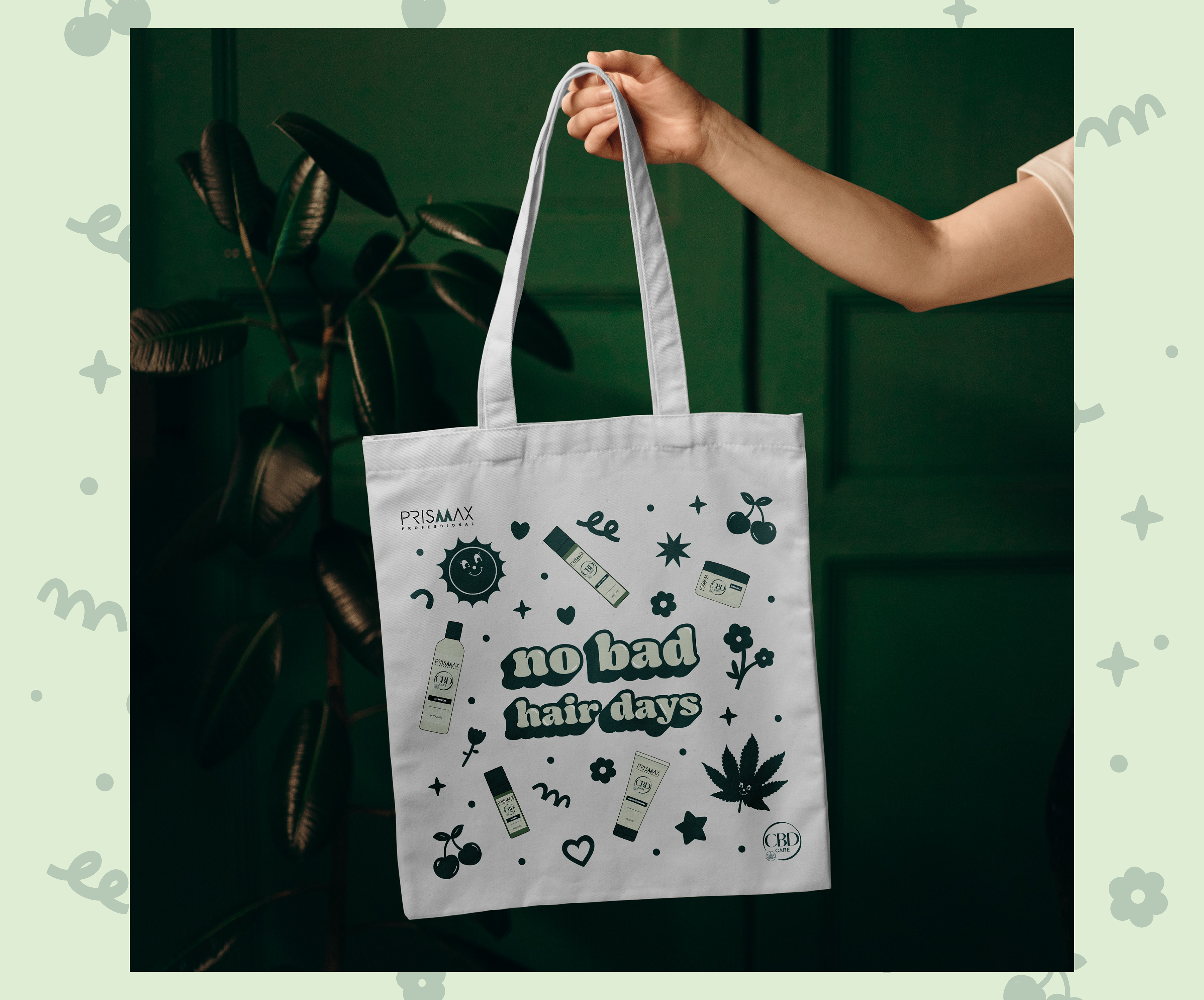 PRISMAX commissioned original illustrations for a tote bag and sticker set for the launch of their CBD Care product line.